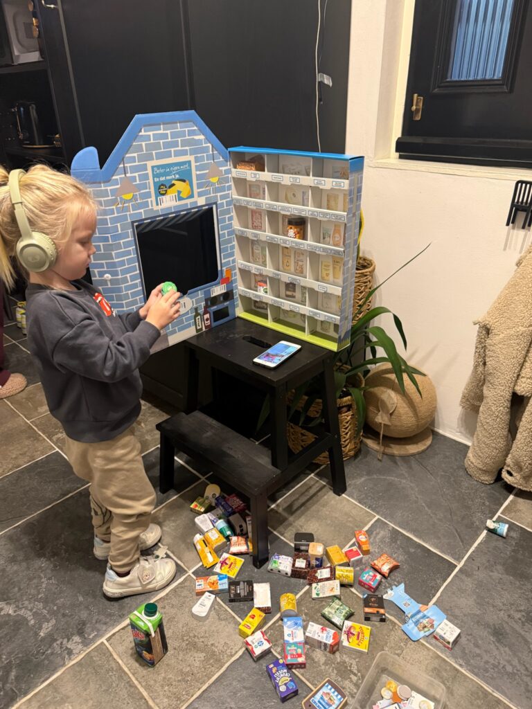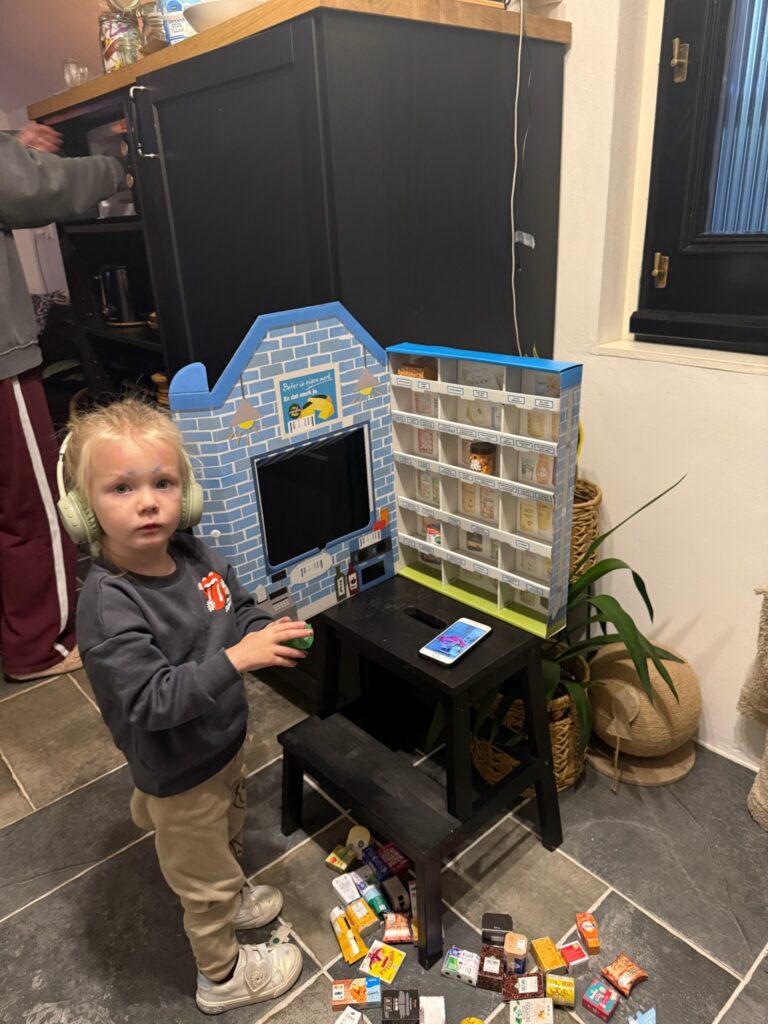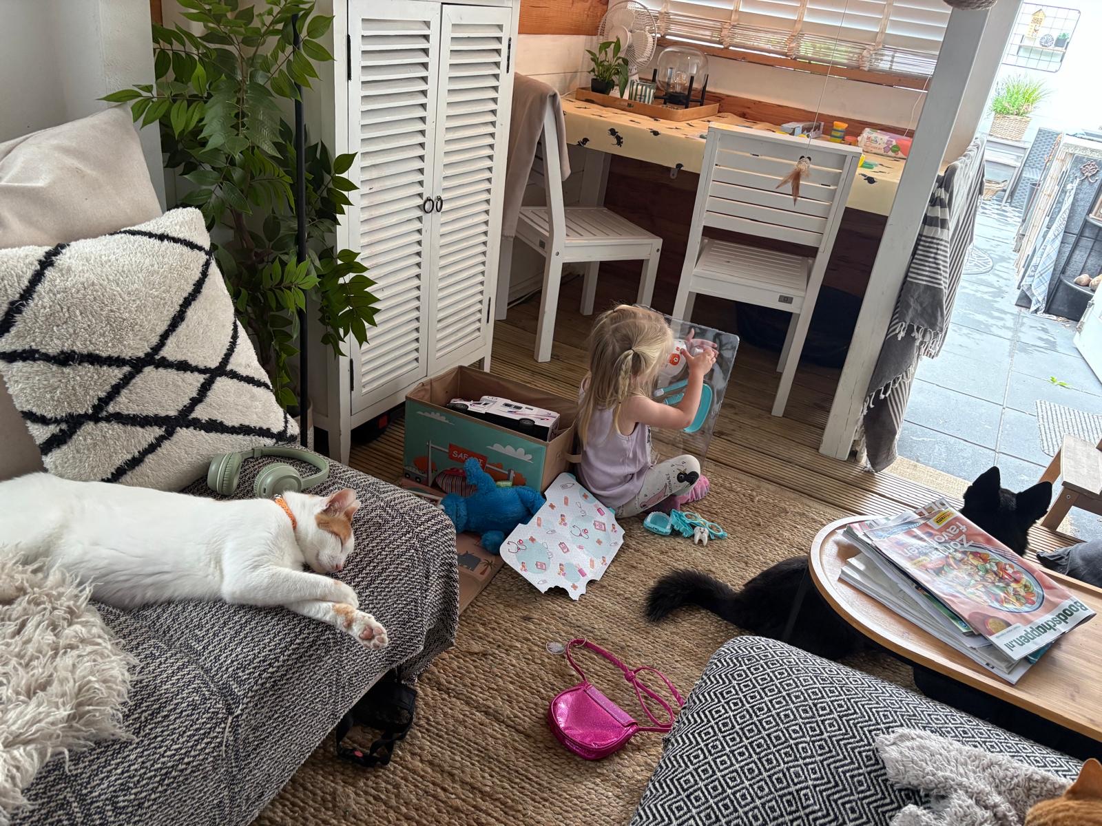 De kamer vol met speelgoed, oma vindt het allemaal goed.