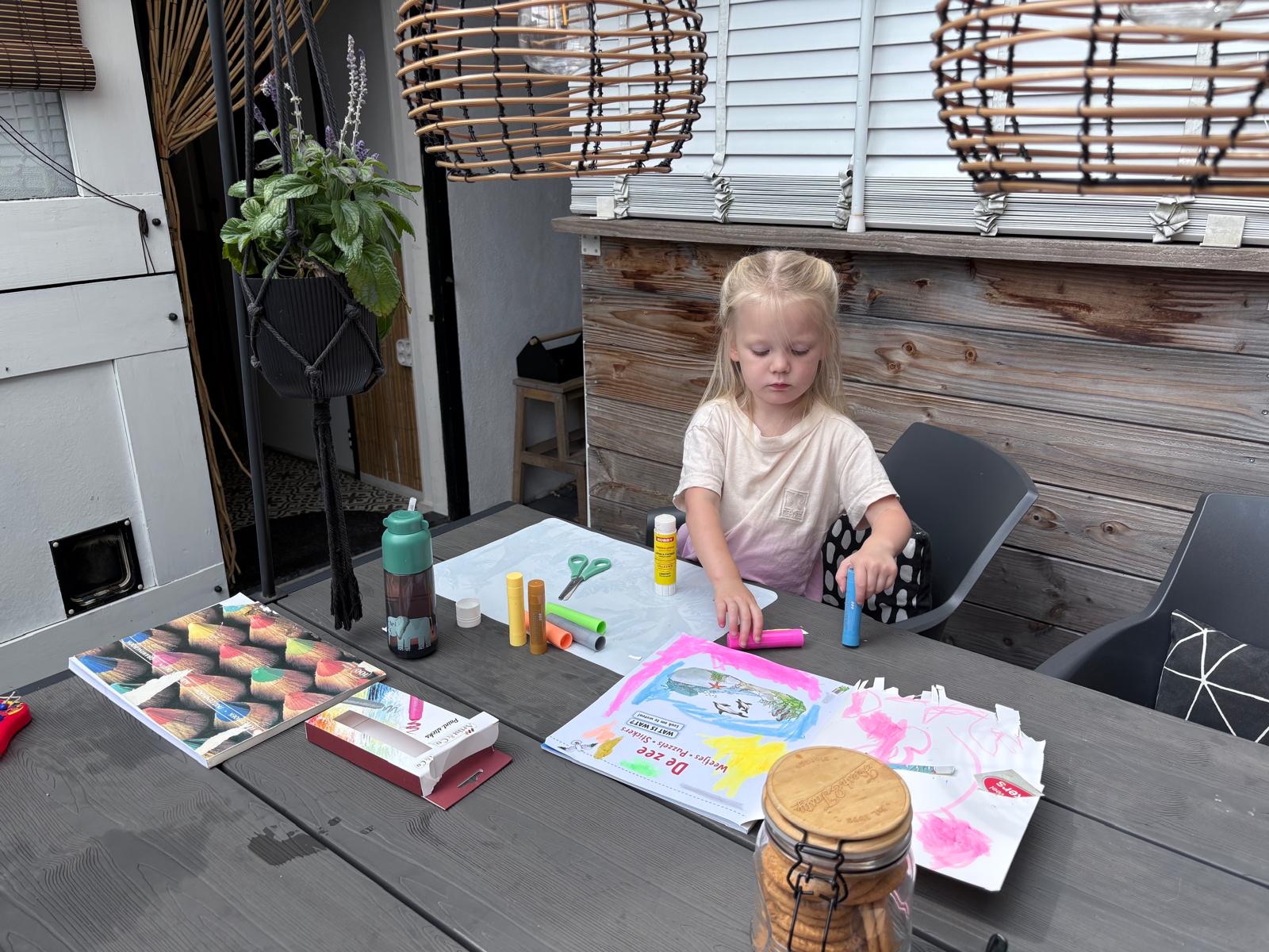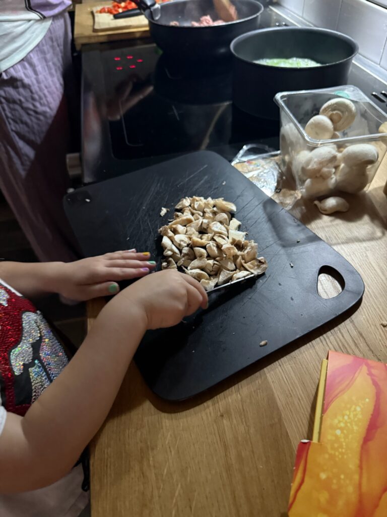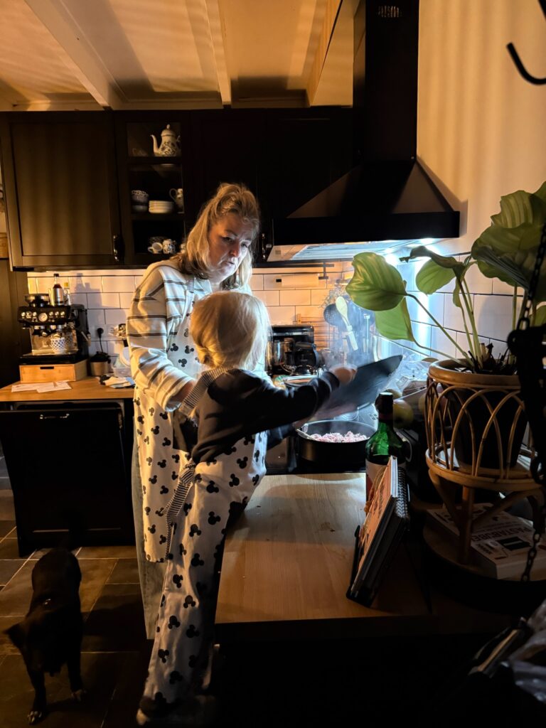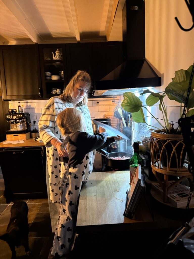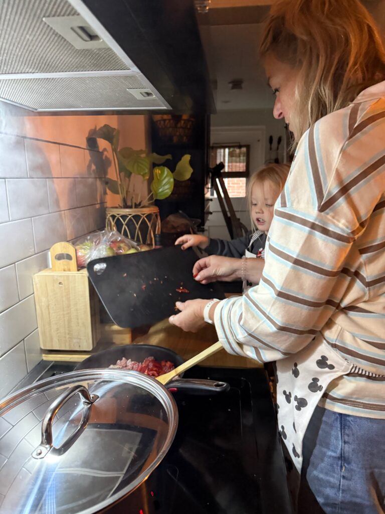 Myra helpt mee met koken.